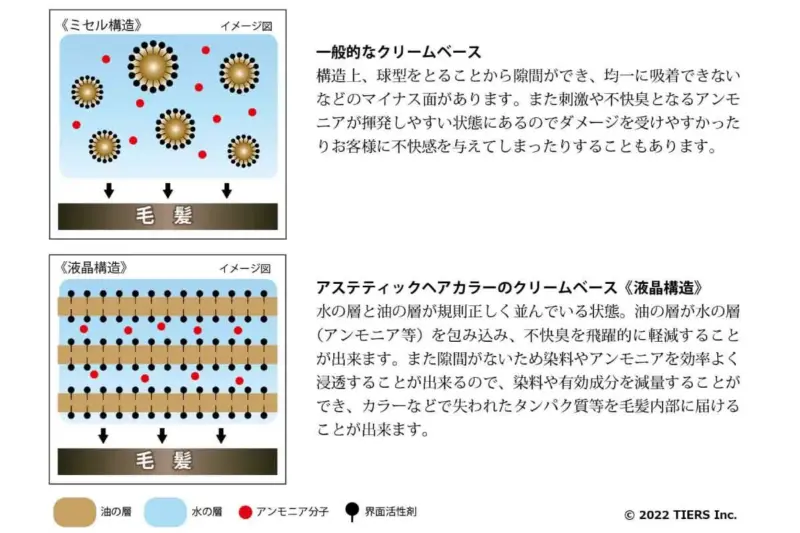 M-68クリームベースが髪に有効成分を効率よく浸透させるため、ヘアカラーで失われたタンパク質やケア成分も効率よく毛髪内部に届けます